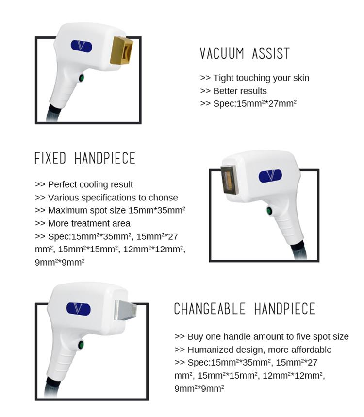 Vacuum system assist+15*27mm2 spot size handle: Energy delivery more efficient, lower fluence required, epidermal cooling more better.