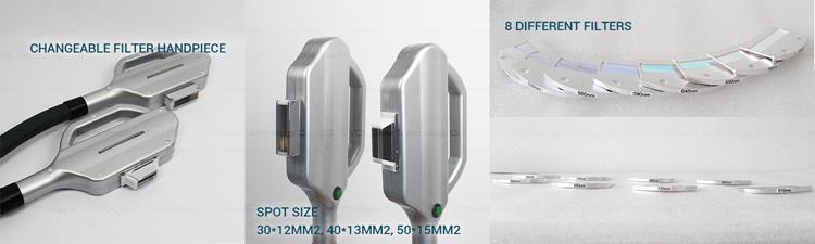 6) 8 Filters Optional handpiece and High Power Fixed Sapphire handpiece available.